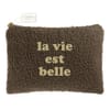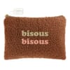 Pochettes en tissus bouclettes, doublure intérieur ,fermeture zip 2 modèles : La vie est belle ou Bisous Bisous